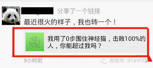 其實(shí)原理很簡單,就是自己編輯一篇文章,題目要寫的和玩游戲之后分享的一模一樣,然后把數(shù)字改為0,然后用自己的私人微信號轉(zhuǎn)發(fā)到朋友圈就可以了。在大家都刷屏玩,結(jié)果最多的也只能6步逮到神經(jīng)貓的時候,你來個0步,吸引力肯定很強(qiáng)。一方面是借勢了社交媒體的熱事件,另一方面,又借助了大家對這種分享攀比愛面子的心理。