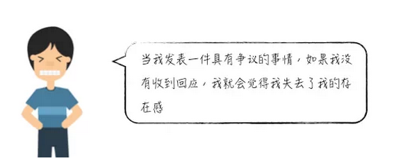 boomerangs 在詞典中的翻譯是“回力鏢;自作自受,自食其果”,我覺得這個詞應(yīng)該是取的“回力鏢”的解釋,隱喻那種分享信息是為了得到反饋和認(rèn)同的人,就像扔出回力標(biāo)為了等到它最后返回手中,因此我將這類人,稱作“尋求認(rèn)同者”,這類人分享內(nèi)容,是為了能得到其它人的回應(yīng)和認(rèn)同,并根據(jù)回應(yīng)強化自己對某些事的看法或認(rèn)知;一旦沒有收到反饋或是沒有得到認(rèn)同,他們則會覺得沒有存在感。