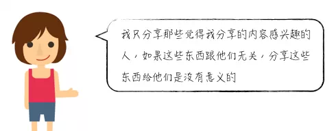 “挑選者”是根據(jù)分享內(nèi)容的方式和動機劃分的一類人群,挑選者是群完美主義者,他們會花大量的精力去精挑細(xì)選要分享的內(nèi)容(類似“花瓣”中的分享者),并且希望這些內(nèi)容,只分享給那些他們認(rèn)為與之相關(guān)的人,這樣的分享才是有意義的。