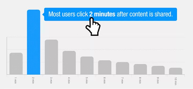 一條分享 75% 的反饋發(fā)生在分享后的一天內(nèi),其中反饋的高峰是分享 2 分鐘后。