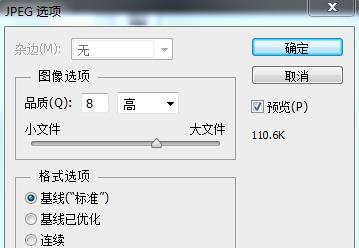 2. 針對(duì)性選擇圖片格式,在無(wú)透明背景需求下,對(duì)于顏色較單一、無(wú)色彩漸變的圖片僅使用gif格式,對(duì)于jpg圖片也可按照其清晰度要求,在導(dǎo)出jpg的時(shí)候選擇對(duì)應(yīng)的“品質(zhì)”進(jìn)行優(yōu)化: