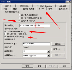 打開(kāi)IIS網(wǎng)站屬性找到主目錄選擇重定向到url,同時(shí)選擇資源的永久重定向和上面輸入準(zhǔn)確的url