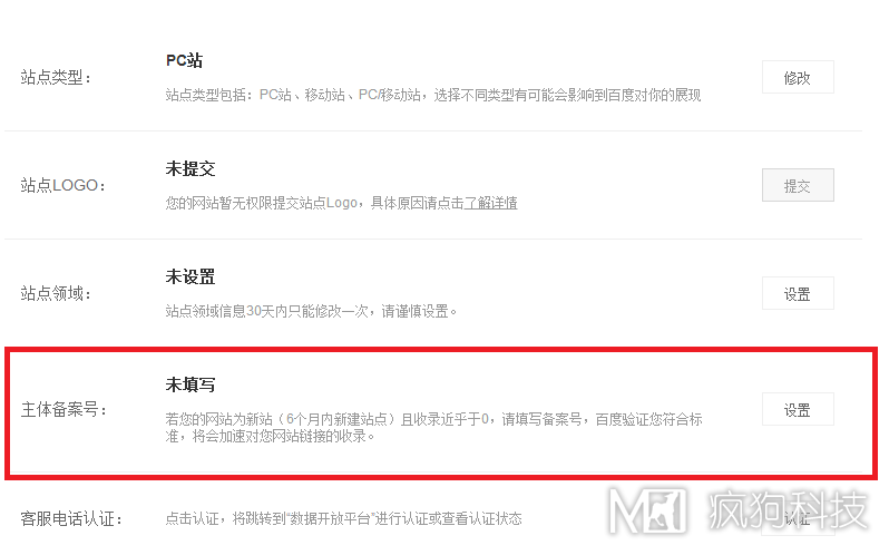 看到這里,小伙伴們是不是喜出望外,接下來的操作其實(shí)很簡單,只要點(diǎn)擊設(shè)置,提交網(wǎng)站的備案號,就可以進(jìn)行在線審核了,具體審核需要什么詳細(xì)的標(biāo)準(zhǔn),給出以下幾點(diǎn)猜想: