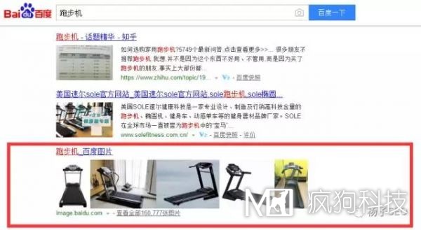 通過(guò)以上圖我們可以看見(jiàn)百度快照排名第一個(gè)是百度百科,百度百科是幫助用戶解決跑步機(jī)相關(guān)“知識(shí)”問(wèn)題的,排名第二個(gè)商城,幫助用戶解決購(gòu)買(mǎi)需求的,排名第三個(gè)是做跑步機(jī)“評(píng)測(cè)”的。接下來(lái)再看如下圖所示: