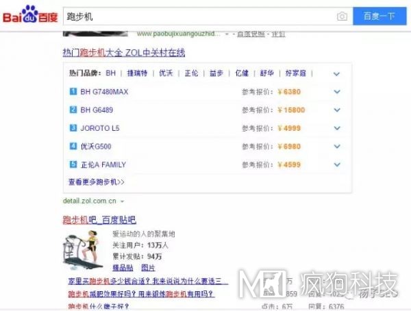 排在第四的是中關(guān)村網(wǎng)站,中關(guān)村是做價(jià)格對(duì)比的,幫助用戶解決關(guān)于跑步機(jī)“價(jià)格”的問(wèn)題,貼吧也是解決相關(guān)“知識(shí)”的問(wèn)題。